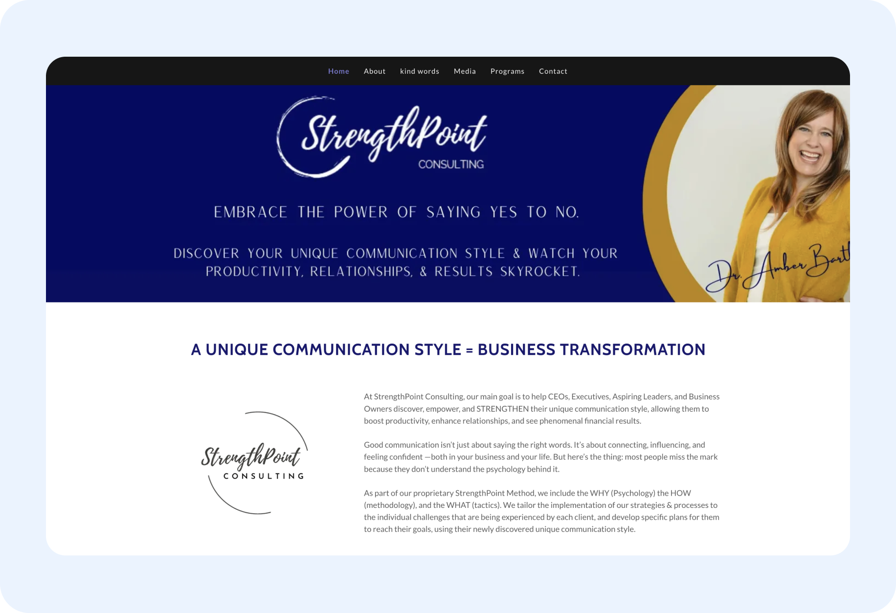 StrengthPoint Consulting offers workshops, one-on-one coaching, and a signature three-month program with live monthly sessions.